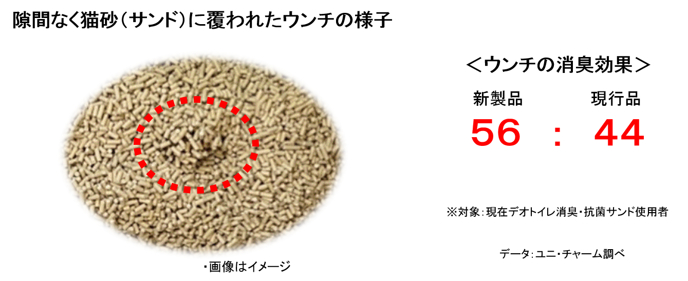そこでこの度、猫砂の粒の大きさが現行品の約30%※1と小さな『デオトイレ 消臭・抗菌サンド』 小粒 を、全国で発売します。