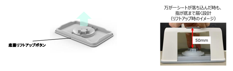 ④ 底蓋にリフトアップ機能を搭載。最後の一枚まで、ずっと取り出しやすい