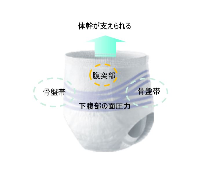 ・ 骨盤帯に圧力を加え、腹圧を高め、体幹を支えてバランスを保ちます。