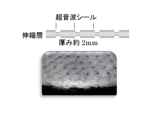 ・ 伸縮不織布を中間層にして超音波シールで一体化し、均一に薄く伸縮性があり布下着の生地感です。
