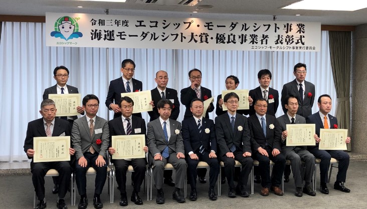※ エコシップ・モーダルシフト事業実行委員会、国土交通省海事局がモーダルシフトの推進を目的にスタートした「エコシップマーク認定制度」において、特に顕著な功績のあった優良事業者に対して表彰するもの。表彰事業者の中で、革新的な取り組みを行い、最も貢献度が高いと認められる事業者に対して、「海運モーダルシフト大賞」が授与されるもの。