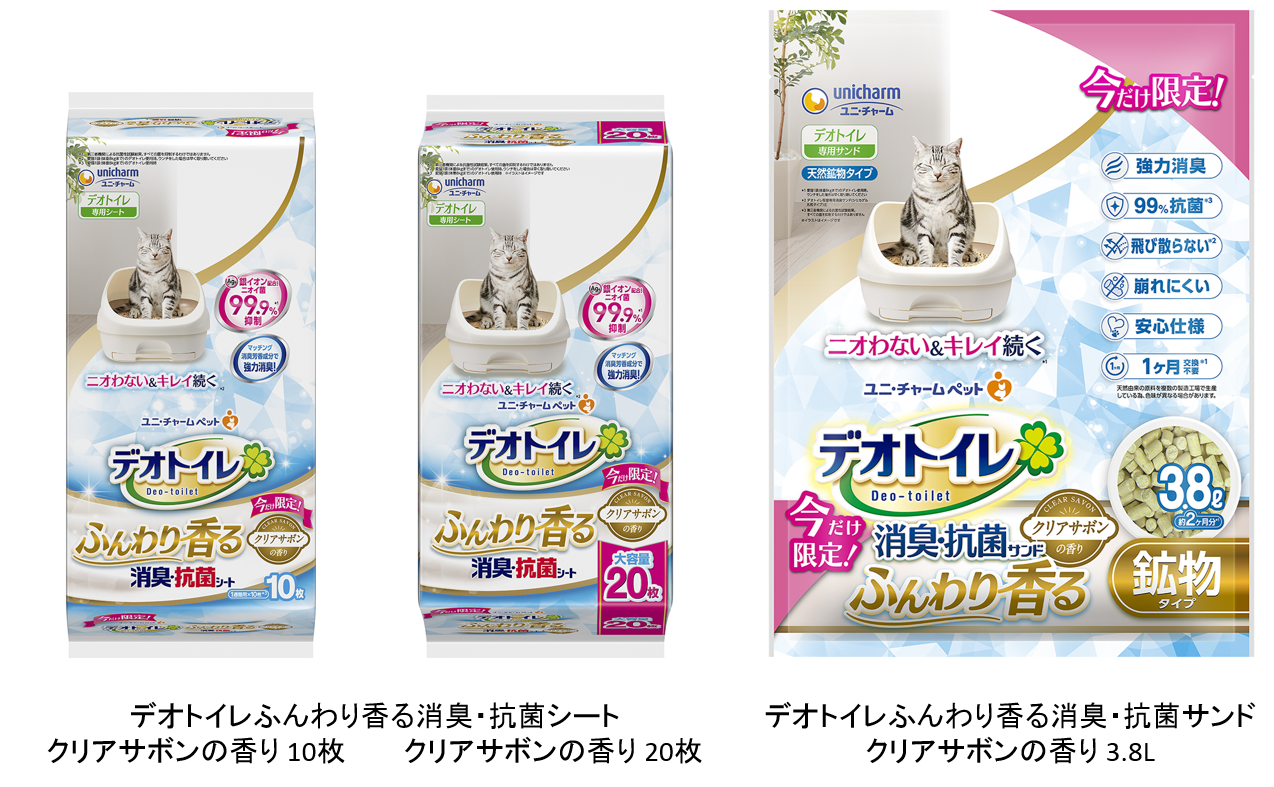ユニ・チャーム株式会社(代表取締役 社長執行役員:高原豪久)は、 在宅時間の増加による猫用システムトイレに対する「香り」や「消臭」といったニーズの拡大にお応えして、『デオトイレ 取替サンド・シート』から、“クリアサボンの香り”を2022年7月25日に全国で夏季限定品として発売します。