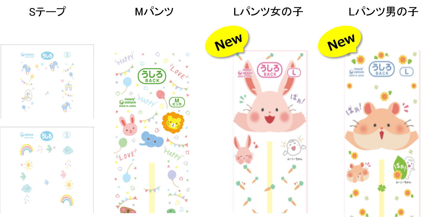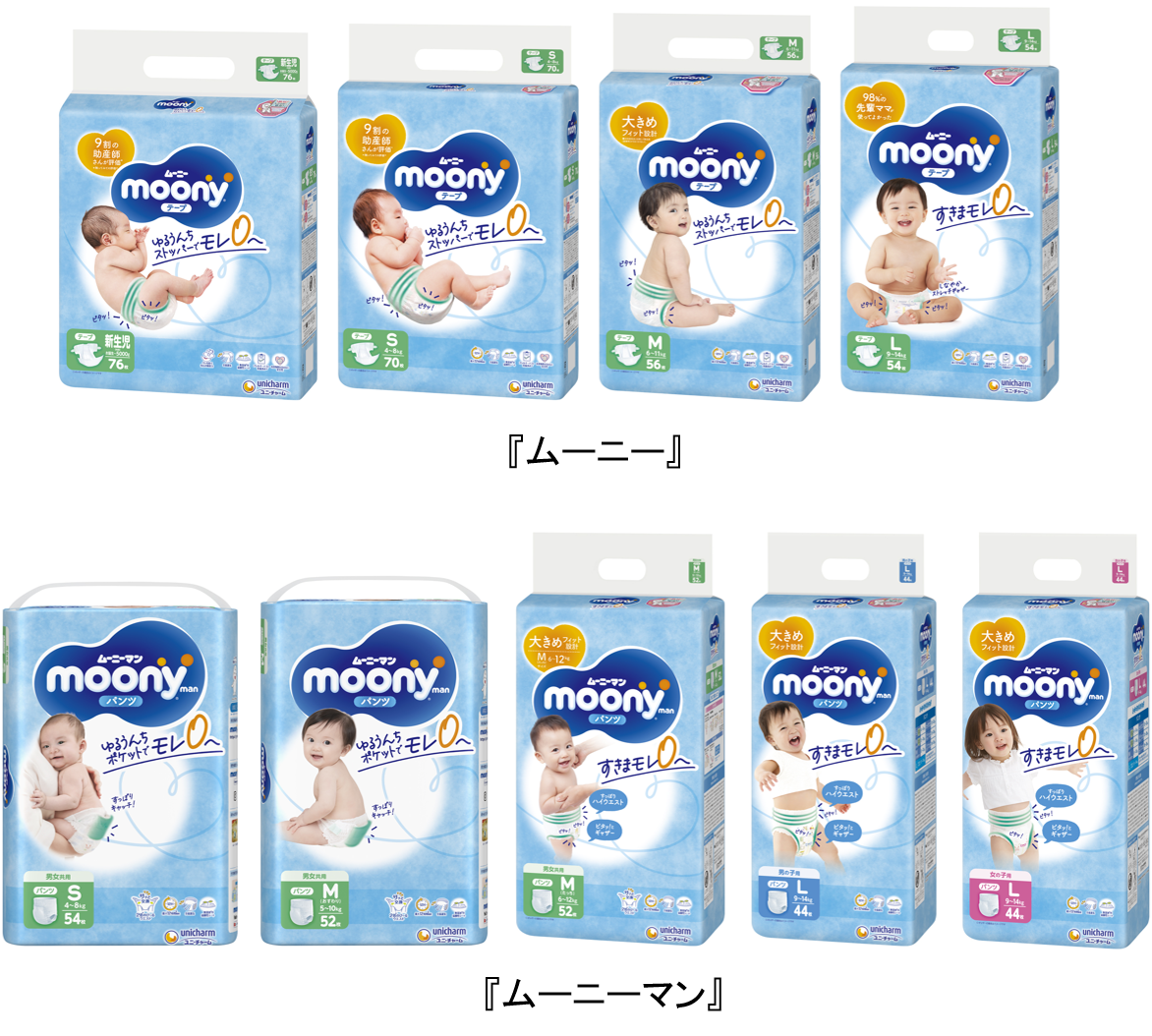 そこでこのたび、『ムーニー』 『ムーニーマン』において、素材の見直しや、成長段階に応じた機能を追加して、発売します。