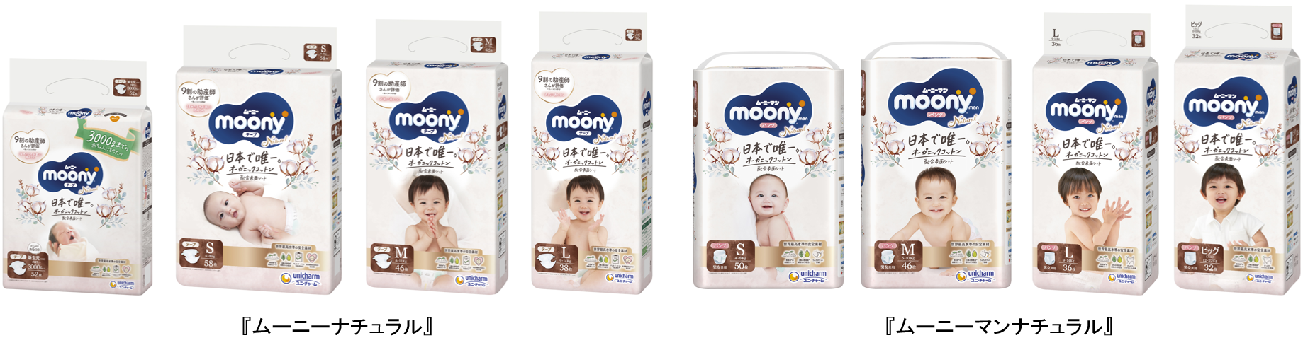 今回の『ムーニー』 『ムーニーマン』の改良と連動して、『ムーニーナチュラル』『ムーニーマンナチュラル』に名称を変更し、パッケージデザインも刷新して2022年10月上旬より発売します。