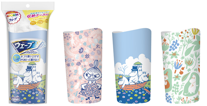 そこでこのたび、お子様から大人まで世代を超えて愛されている「ムーミン」を採用した期間限定品『ムーミンデザイン』を、ウェーブ ハンディワイパーとウェーブ フロアワイパーで発売しました。