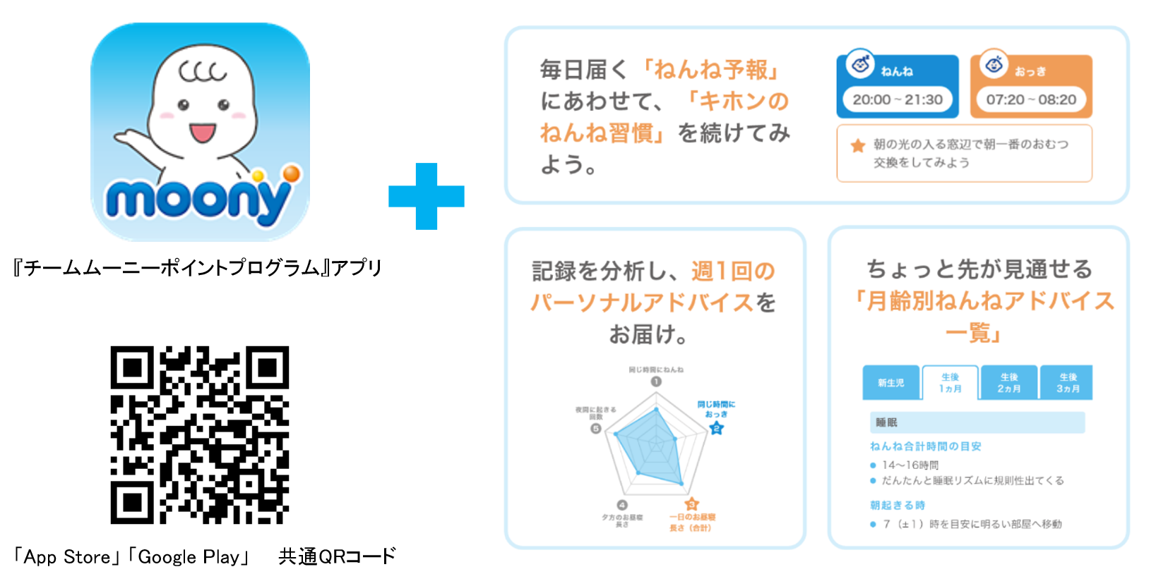 そしてこのたび、広島大学大学院人間社会科学研究科の林光緒教授と、滋賀大学教育学部の大平雅子教授との共同研究から、赤ちゃんの“ねんねリズム”を整える育児サポートコンテンツを開発し、『チームムーニーポイントプログラム』アプリに追加しました。