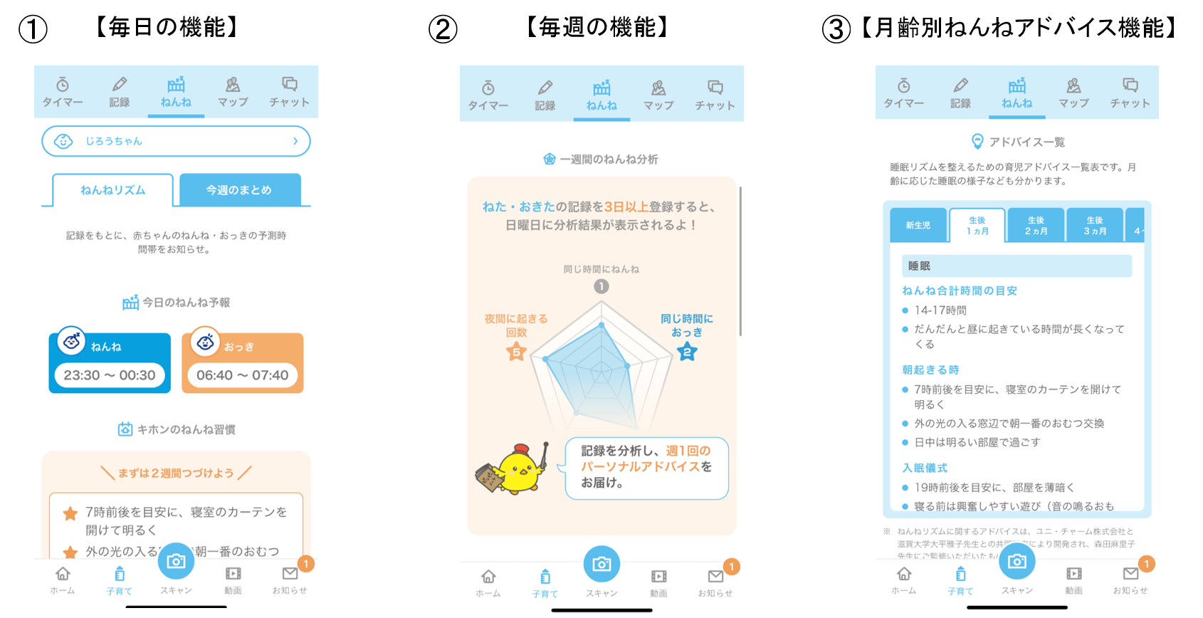 ① 毎日の機能:「ねんね予報」