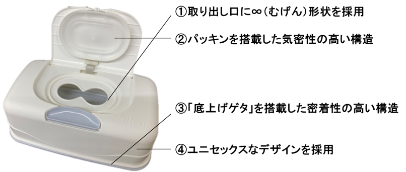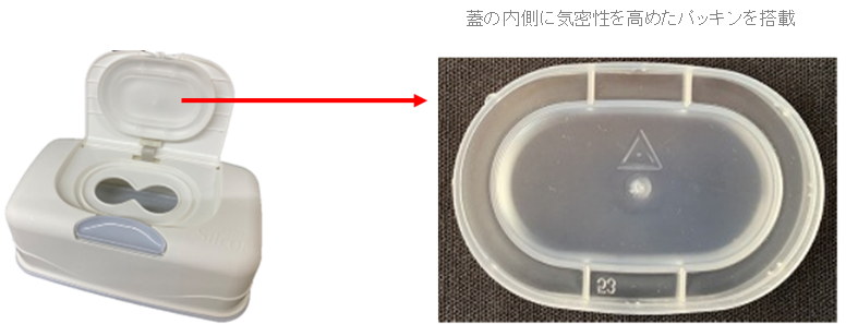 ・フタの内側にパッキンを搭載して気密性を高めて、最後までシートを乾きにくくしました。