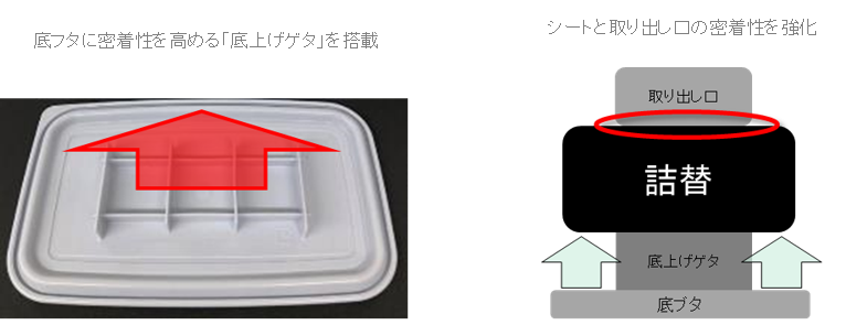 ・底フタに「底上げゲタ」を搭載してシートと取り出し口を密着させることで、乾きにくくしました。