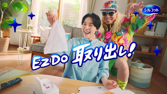 また、DJ KOOさんが『シルコットⓇウエットティッシュ』の伝道師として、一般のご家庭を訪問し、今回改良した本体容器の特長について、おなじみの決め台詞に合わせて「EZ DO 取り出し!」や「EZ DO 除菌!」と発信いただきました。