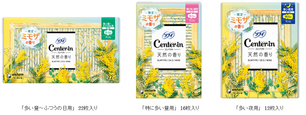 ※ “ミモザ”の個包装デザインと香りの採用は、『ソフィ® センターインコンパクト』のみです。