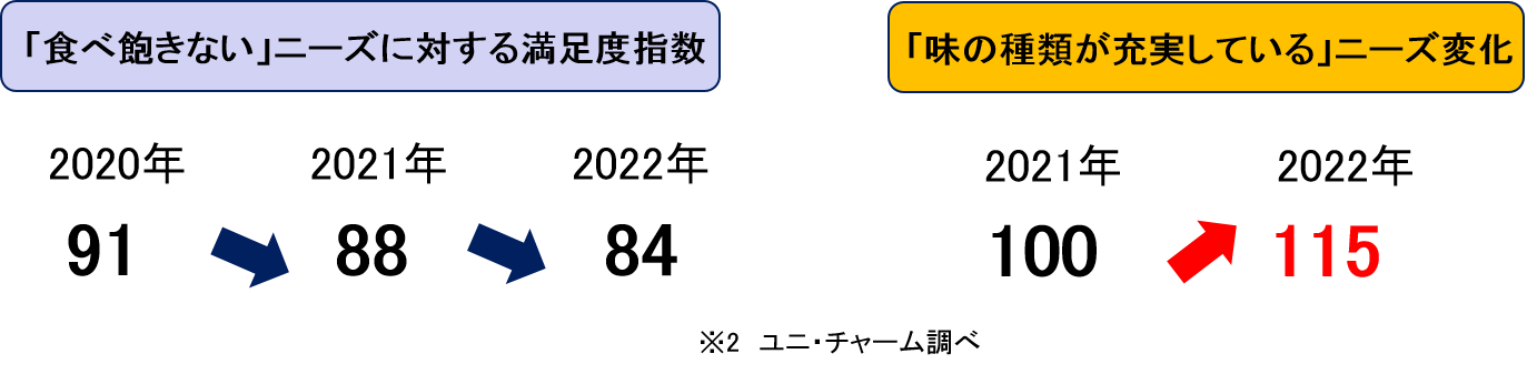 一方、飼い主様の健康機能食における「愛猫が食べ飽きないこと」への満足度は低く、 “味” を重視されている飼い主様が増加していることががわかりました。※2