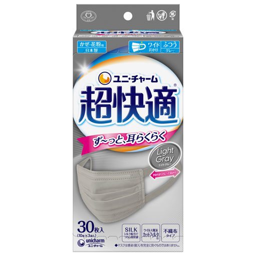 ユニ・チャーム株式会社(代表取締役 社長執行役員:高原豪久)は、「長時間つけても快適なつけ心地」と多くのお客様に好評の『超快適®マスク プリーツタイプ』Light Gray(ライトグレー)から大入り数パック30枚入り(約1ヵ月分)を、2023年3月7日より全国で発売します。