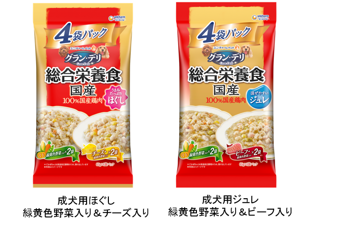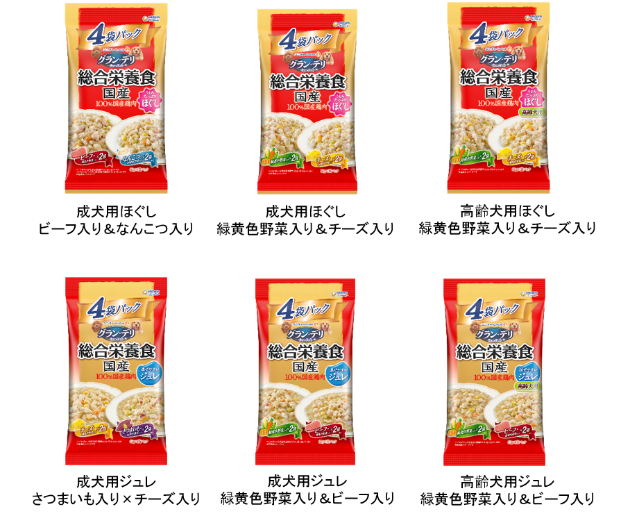 しかしながら、バランスを重視したワンちゃん専用フードカテゴリーでは、国産素材を使用したパウチタイプは少なく、「国産原材料にこだわったグラン・デリで、おいしくて栄養バランスのとれたウェットフードを発売して欲しい!」といった声を多くお寄せいただいております。