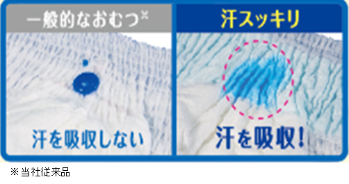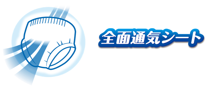 ・全面通気素シートがおむつの内側の湿気を逃がすので、汗ばむ日も快適です。