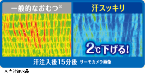 (2)“汗吸いとるシート”が汗を吸収して熱とともに外に発散することで、温度を最大2℃※3下げます。