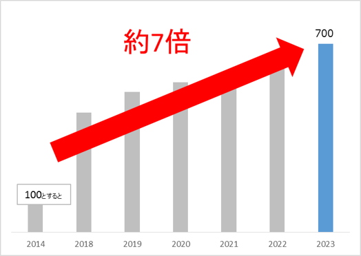 このような状況を踏まえて、当社は2014年に男性用の尿もれケア専用品を発売し、尿量に応じて7種類をラインナップするなどの対応を進めました。お陰様をもちまして多くの方にご支持をいただき、その市場規模は参入当初の約7倍※1にまで拡大しました。