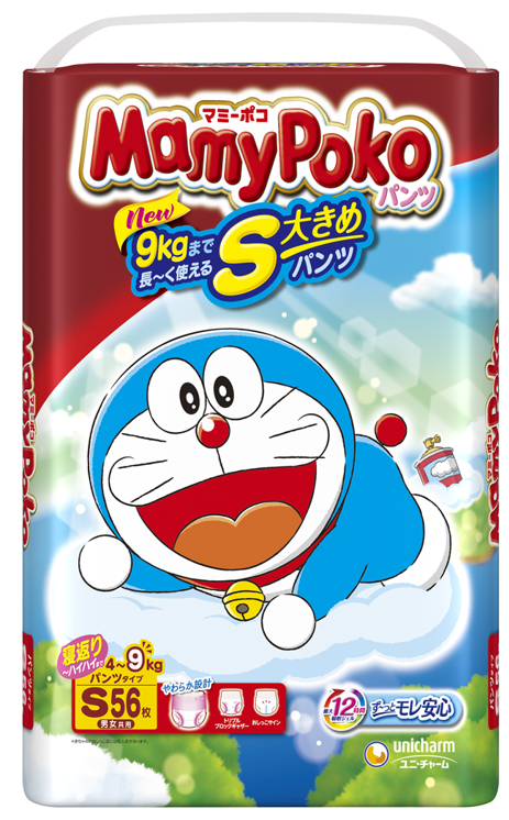 そこでこのたび、Sサイズなのに“大きめ設計”で体重9kgのお子さままでご利用いただける『マミーポコパンツ』Sサイズを発売します。