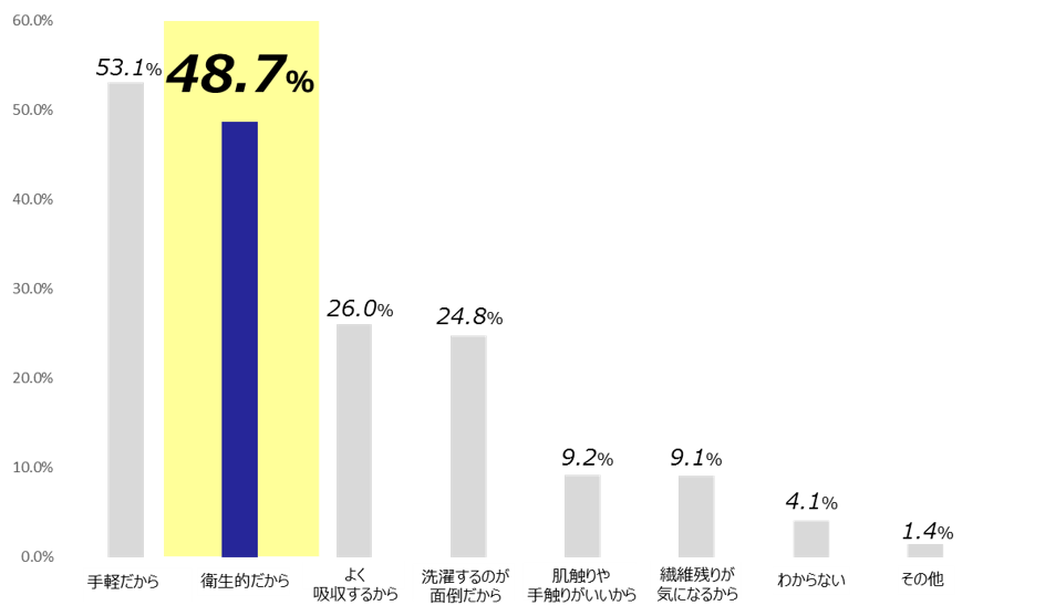 ・48.7%が「ハンカチやタオルより衛生的だから」ペーパータオルを継続して使用すると回答。