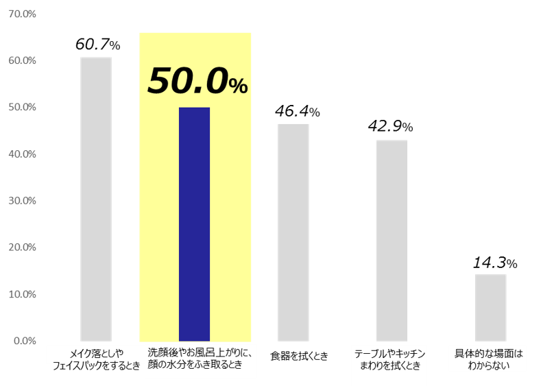 ・18-24歳女性の50.0%が「洗顔後やお風呂上がりに、顔の水分をふき取るとき」にペーパータオルの使用習慣は定着すると回答。