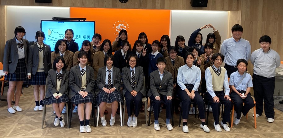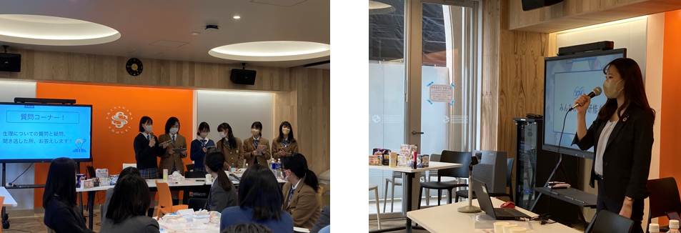 品川女子学院有志「CLAIR.」の皆さんによる講義の様子 当社社員による説明の様子