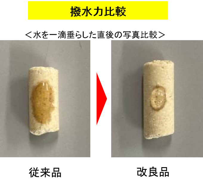 ※1 撥水力とは粒にコーティングされた撥水剤の撥水効果を示す。当社従来品との比較。
