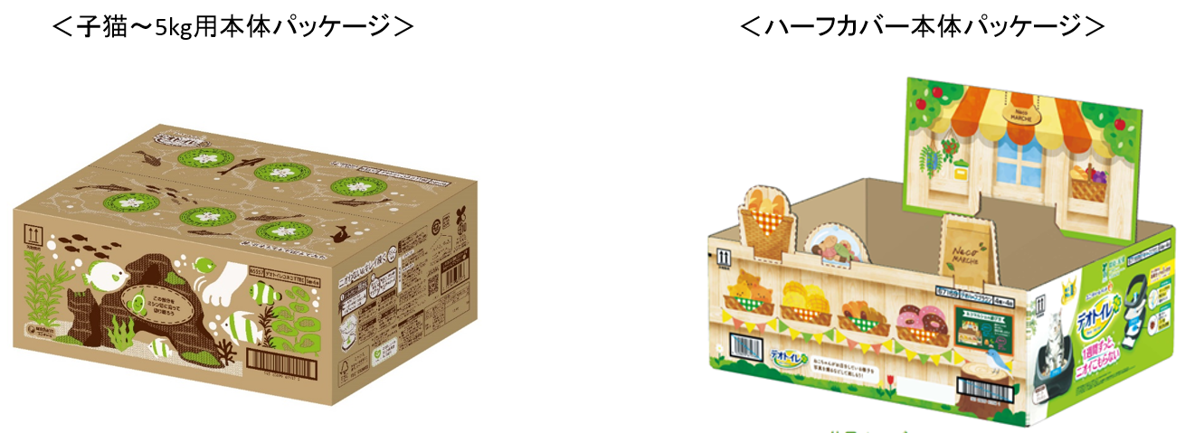ユニ・チャーム株式会社(代表取締役 社長執行役員:高原豪久)は、 若い世代を中心に環境意識が高まっていることをうけ、原料の一部にバイオマス資源(植物由来原材料)を使用した、『デオトイレ』子猫~5kgの成猫用本体セット・ハーフカバー本体セットを、2023年6月19日に期間限定品として全国で発売します。