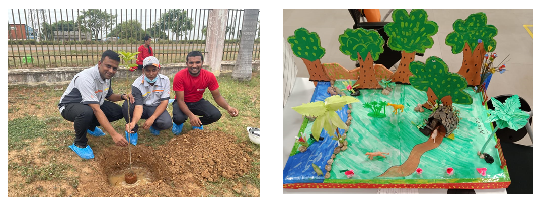 ・活動概要: ニムラナ工場、スリシティ工場の社員が清掃活動のうえ植樹を行いました。また、清掃活動で回収した廃棄物を再利用して自然豊かな環境の