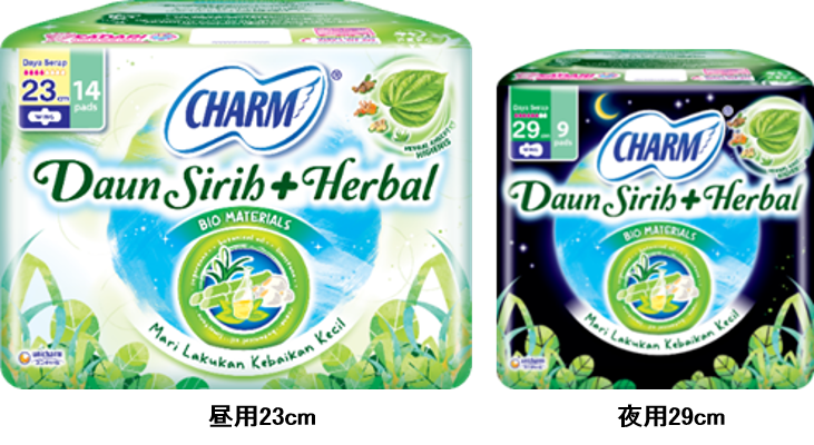 ユニ・チャーム株式会社(代表取締役 社長執行役員:高原豪久)のインドネシア現地法人であるPT Uni-Charm Indonesia Tbk (以下、ユニ・チャームインドネシア)は、生理用品ブランド『CHARM』から“BIO MATERIAL”※を配合した『CHARM Daun Sirih + Herbal Bio』を、「世界環境デー(2023年6月5日)」に合わせてインドネシアで期間限定品として発売しました。