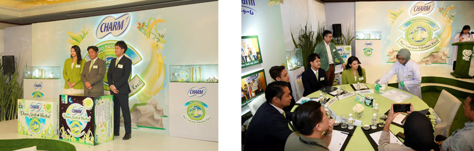 『CHARM Daun Sirih + Herbal Bio』 発売日の記者会見の様子 商品紹介の様子
