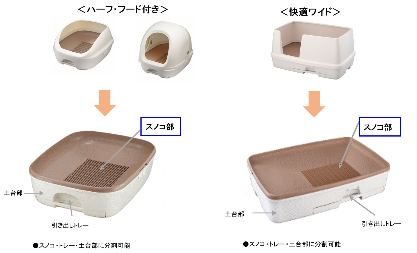 室内で飼育するネコちゃんの飼い主様は、排泄物のニオイに対する不満から、多くの方がシステムトイレを使用しています。こうした飼い主様より、当社の猫用システムトイレ『デオトイレ』に関するお問い合わせも多数いただいています。なかでもパーツ販売のご要望が多く、その中で「排泄物の汚れが落ちにくいから“スノコ”を取り換えパーツとして販売してほしい」という声が約半数※を占めています。
