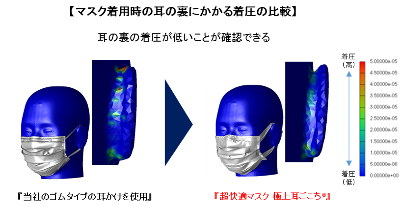 ・ 耳かけ部分の名称を「ゆったりフィット耳かけ」に変更し、着圧を抑えることで耳に負担がかかりにくい構造であることが伝わるようにしました。