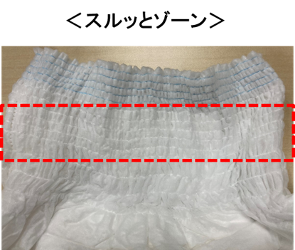 ・特許技術である「スルッとゾーン」は、紙パンツを引き上げる際のお尻の引っかかりを低減しスムーズに着脱することができます。