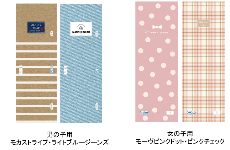 ※『マナーウェア』の従来デザインの女の子用の「ピンクリボン」・「青リボン」、男の子用の「青チェック」・「紺チェック」は、定番品として継続販売をします。