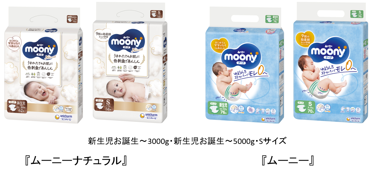『ムーニーナチュラル』 『ムーニー』の新生児・Sサイズに、