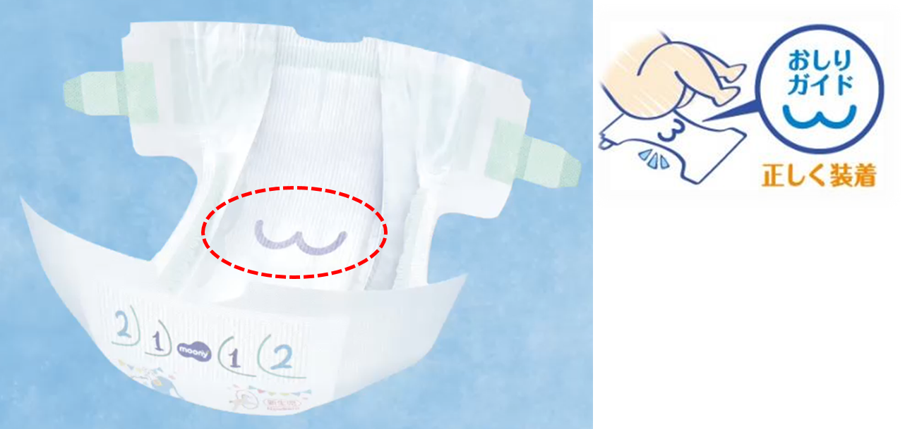 1、おむつ表面に「おしりガイド」のマークを搭載しました。※2