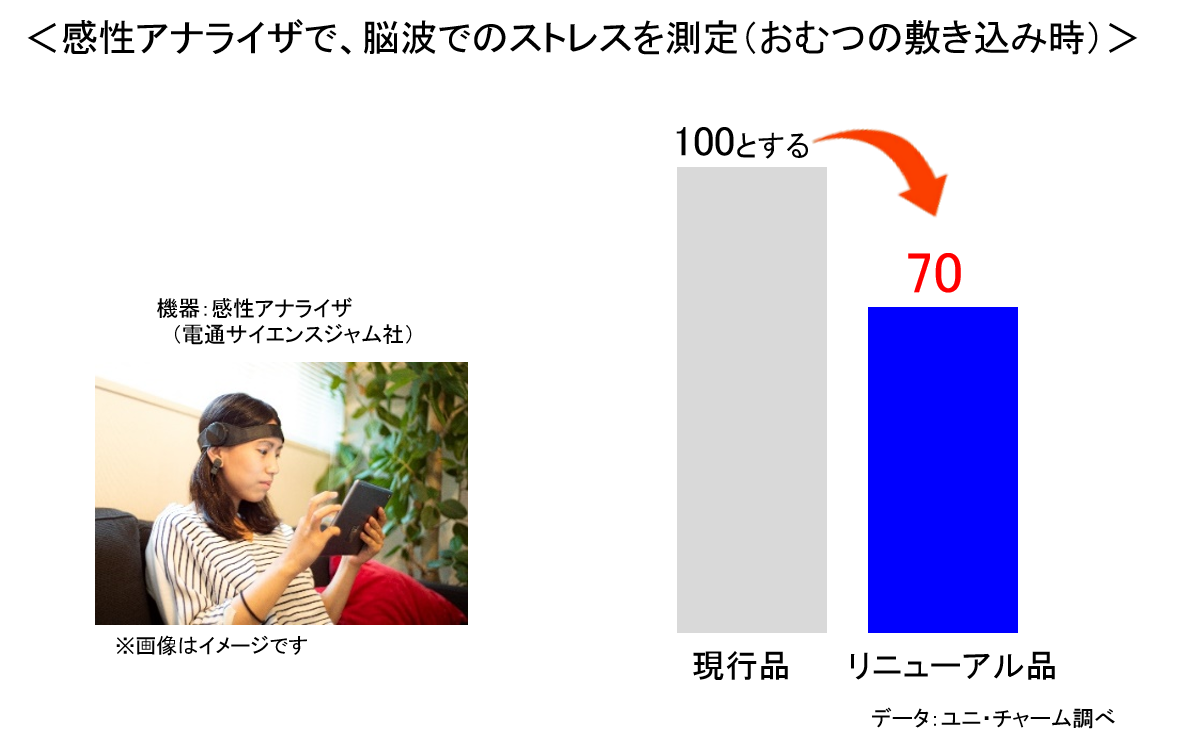 従来品との比較で、ストレス値が30%減少しました。