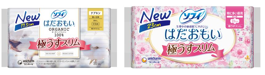 ユニ・チャーム株式会社(代表取締役 社長執行役員:高原豪久)は、生理用ナプキン『ソフィ はだおもい®』から、「オーガニックコットン※1極うすスリム 軽い日用17.5㎝」と、「極うすスリム 特に多い昼用23㎝』を、2023年10月上旬より全国で発売します。
