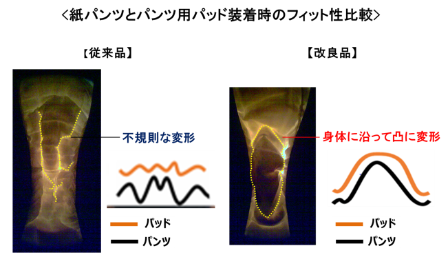 (2) 紙パンツとパンツ用パッドの組み合わせによるフィット性を向上