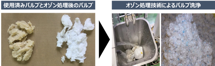・使用済み紙パンツをリサイクルでは、使用部材ごとに「パルプ」「高分子吸収材」「プラスチック」に分別します。