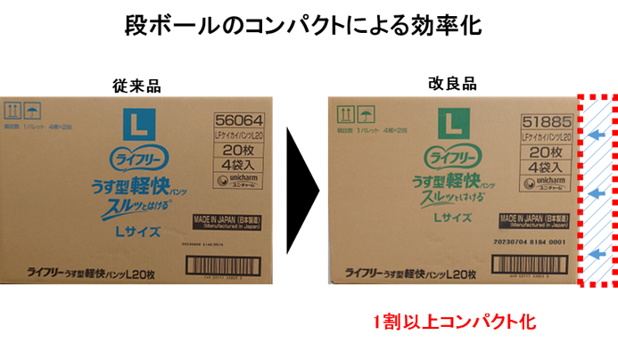 ・これにより段ボールのサイズも従来品と比べて、1割以上コンパクト化しました。※4