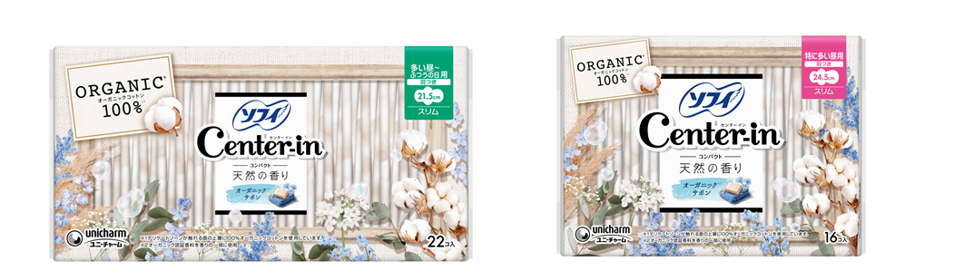 そこでこのたび、肌に触れる部分に“オーガニックコットン”を100%使用し、快適なつけ心地を実現した『ソフィ®センターインコンパクト1/2 オーガニックサボンの香り』を発売します。