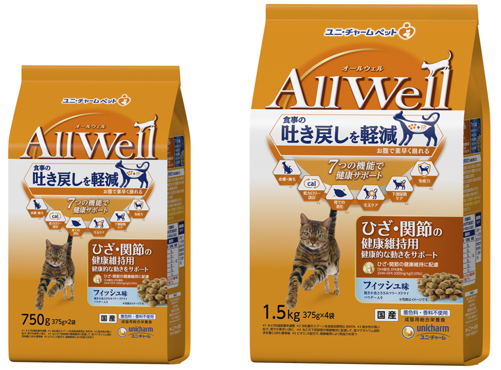ユニ・チャーム株式会社(代表取締役 社長執行役員:高原 豪久)は、「愛猫にはいつまでも元気に動ける身体でいて欲しい」という飼い主様の想いに応えて、猫用健康機能食の『AllWell』から、「ひざ・関節の健康維持用」を、2024年3月4日に全国で発売します。