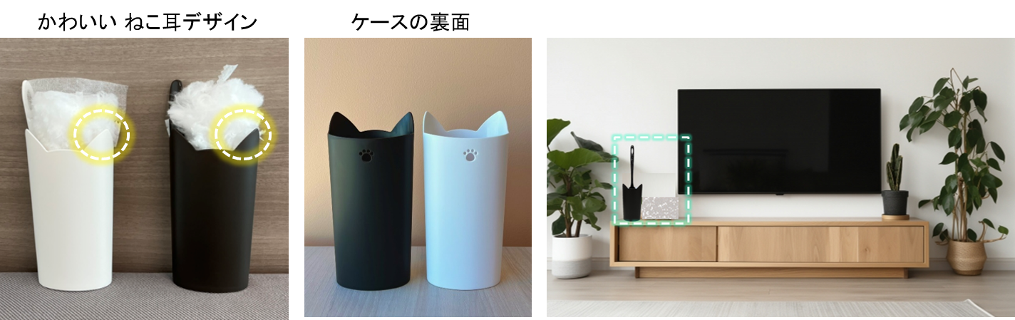・ケースの裏上部には、ねこちゃんの肉球型の穴を設け、壁掛けとして使用できます。