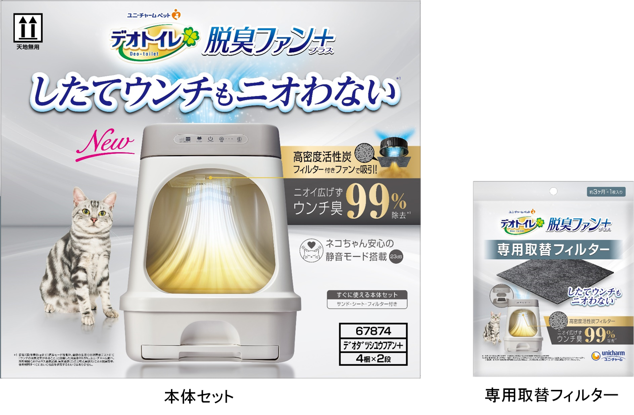 ユニ・チャーム株式会社(代表取締役 社長執行役員:高原 豪久)は、愛猫の“ウンチ臭”でお困りの飼い主様に向けて、"したてウンチ"もニオわない※1『デオトイレ®』脱臭ファン+(プラス)を、2024年3月25日に全国で発売します。