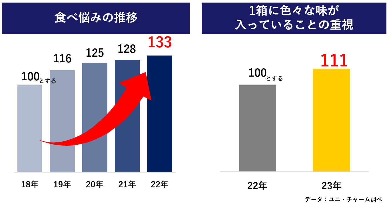 猫用ドライフード市場は年々拡大しています。一方で、同じフードが続くと飽きてしまうという、いわゆる“食べ悩み”が増加しています。このため、飼い主様は食べ飽きないように定期的に味を変えたり、複数の種類を混ぜるなどの工夫をしています。