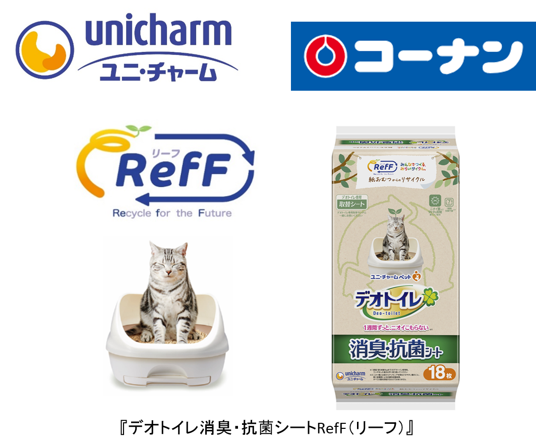 ユニ・チャーム株式会社(代表取締役 社長執行役員:高原 豪久)は、鹿児島県志布志市と大崎町で使用済み紙パンツをリサイクルしたパルプを原材料に使用した『デオトイレ消臭・抗菌シートRefF(リーフ)※1』を、コーナン商事株式会社(代表取締役社長:疋田 直太郎/以下、コーナン商事)の店舗およびユニ・チャームダイレクトショップで2024年4月22日に販売することをお知らせします。