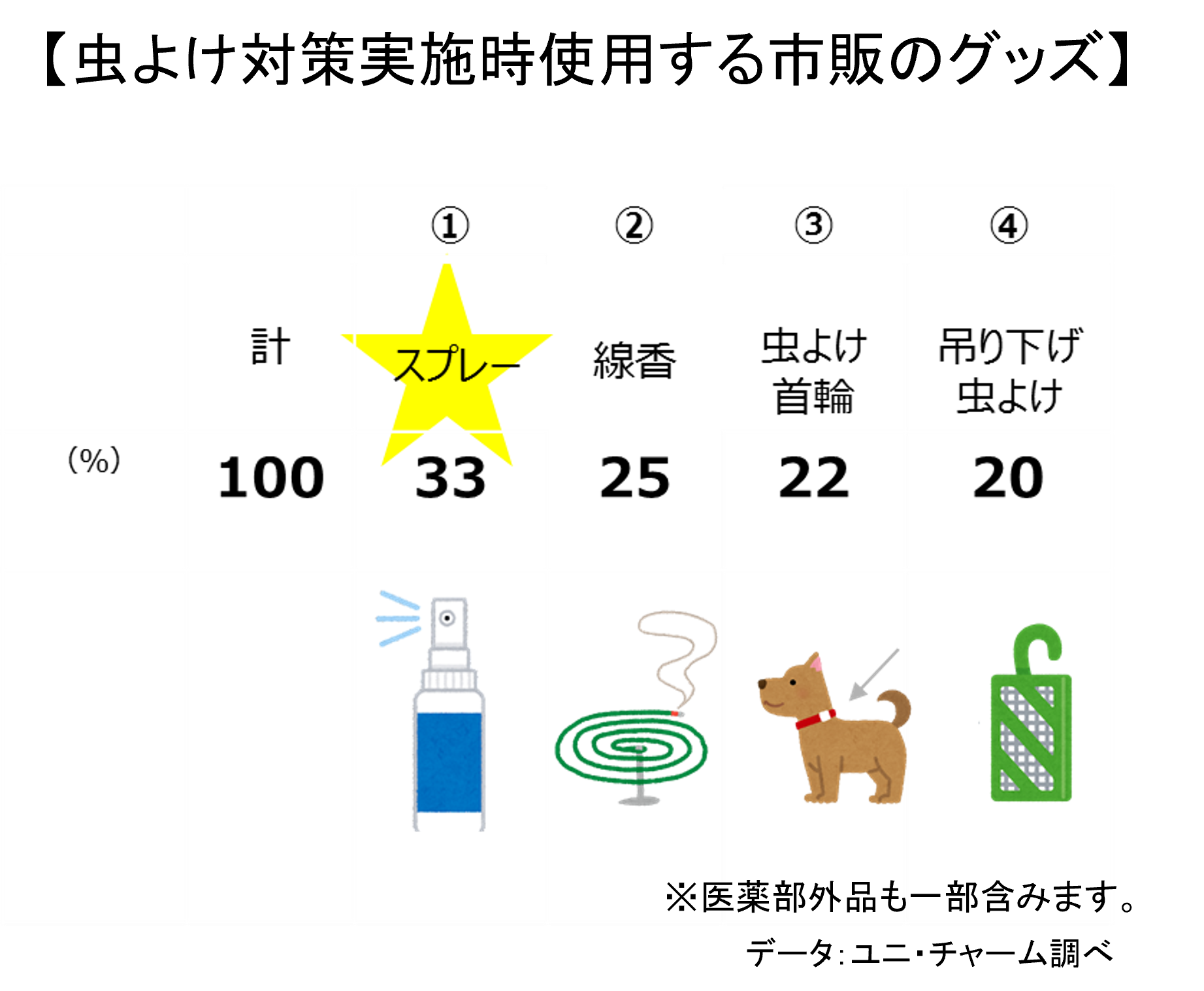 しかしながら、外出機会が増える一方で、夏場になると「いっしょにおでかけしたいけど、不快な虫が気になる」という不安を感じる方がいらっしゃいます。飼育者の87%※が夏には虫よけ対策を実施されており、主にスプレーや線香などを使用していますが、「スプレーが愛犬にもかかってしまう」「おでかけ時にかさばる」などの不満を持っていることがわかりました。