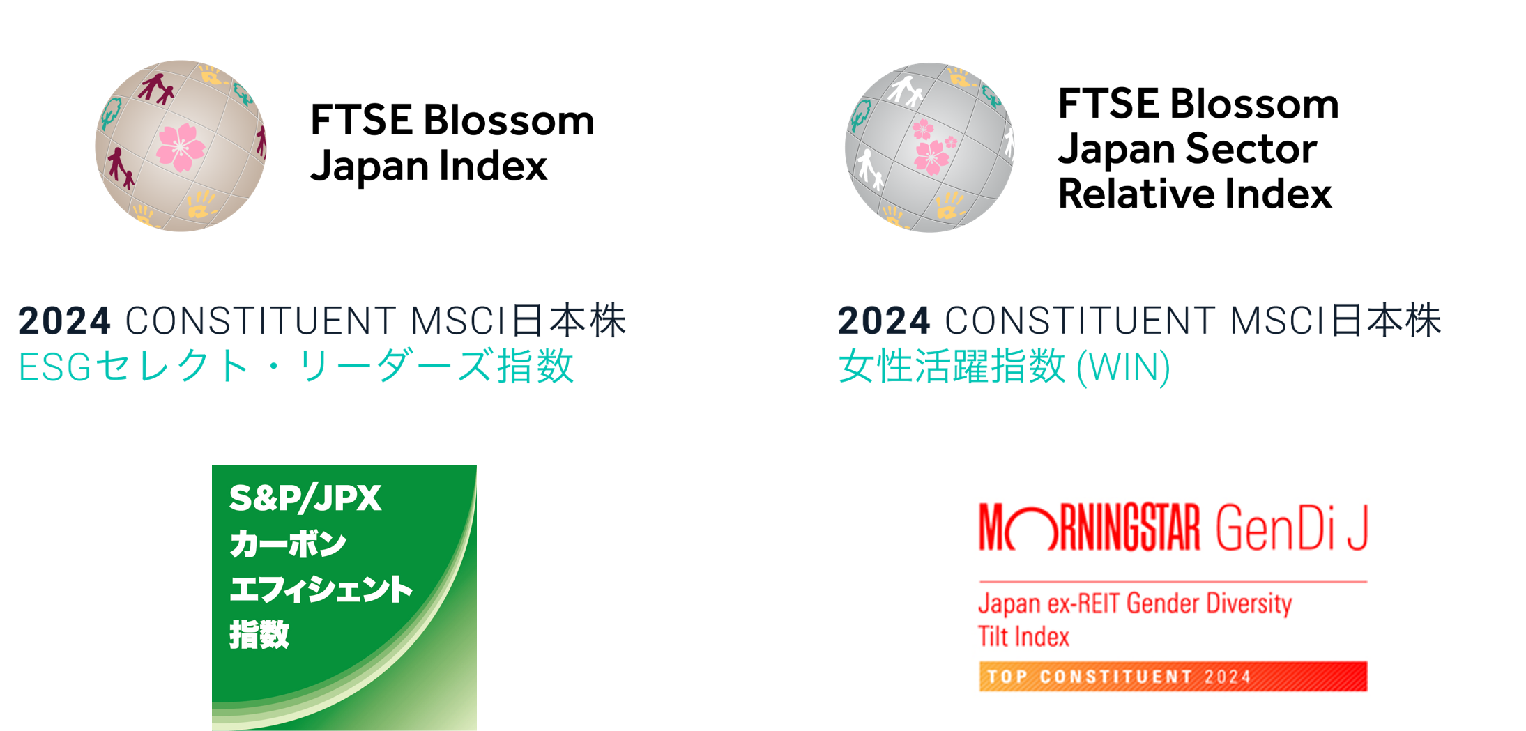 「FTSE Blossom Japan Index」および「S&P/JPXカーボン・エフィシェント指数シリーズ」には6年連続の選定となります。また、「FTSE Blossom Japan Sector Relative Index」には3年連続の選定です。また、「MSCI日本株女性活躍指数(WIN)」には5回目の選定となります。
