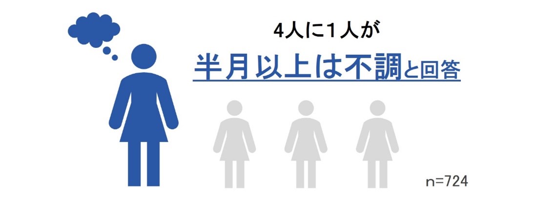 ✓ 女性の4人に1人が半月以上、不調を感じている。